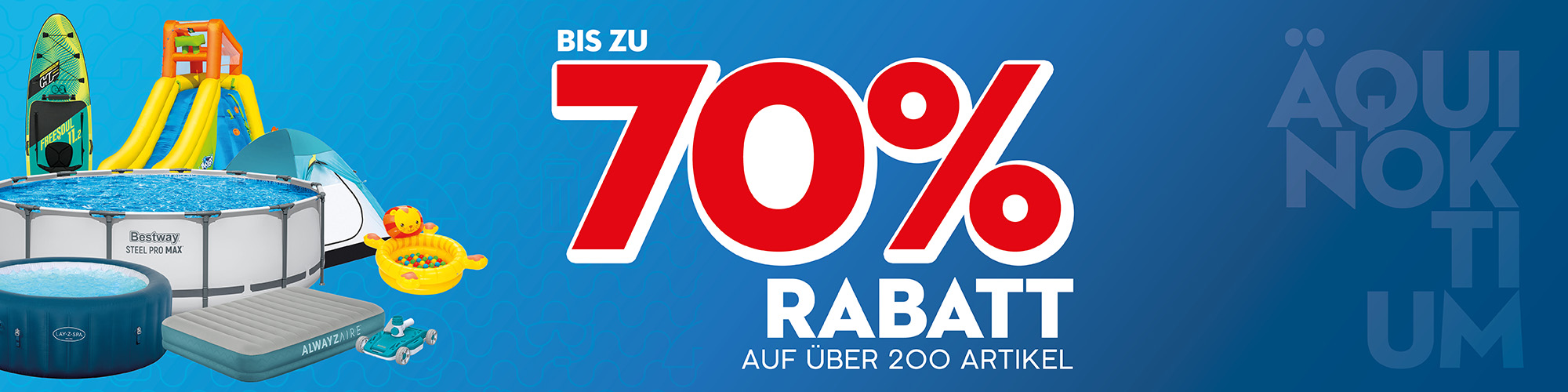 Bis zu 70 % sparen! Der Sommer rückt näher und wir feiern den Start in die neue Outdoor-Saison! Vom 20.03. bis zum 06.04.2026 warten im Bestwaystore über 200 stark reduzierte Artikel auf Dich. Egal ob entspannte Stunden im Whirlpool oder Badespaß im eigenen Pool - hol Dir Dein Urlaubsfeeling direkt nach Hause und rüste Deinen Garten für die warme Jahreszeit auf. Greif schnell zu und sichere Dir die besten Angebote!