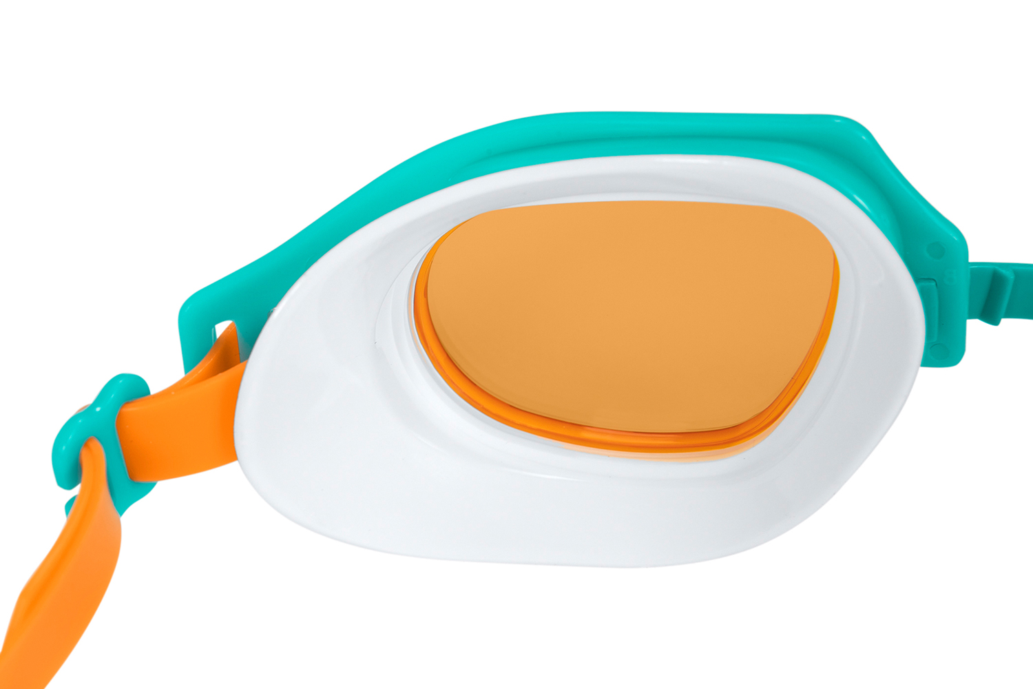 Die weichen, komfortablen Augenschalen der Bestway® Aqua Burst Essential™ Schwimmbrille bestehen aus latexfreiem Material, sodass Kinder die Schwimmbrille auch nach stundenlangem Schwimmen problemlos tragen können. Ein verstellbarer Nasenbügel sowie verstellbares Silikon-Kopfband ermöglichen eine individuelle und komfortable Anpassung der Schwimmbrille.
