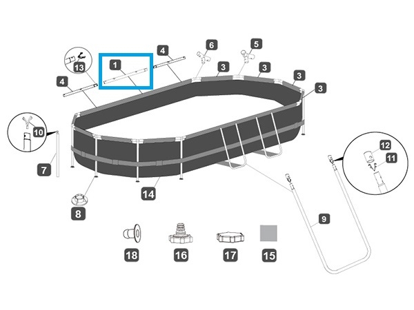 Bestway® Ersatzteil Horizontale Stange A (braun) für Power Steel™ Swim Vista Pool 427 x 250 x 100 cm