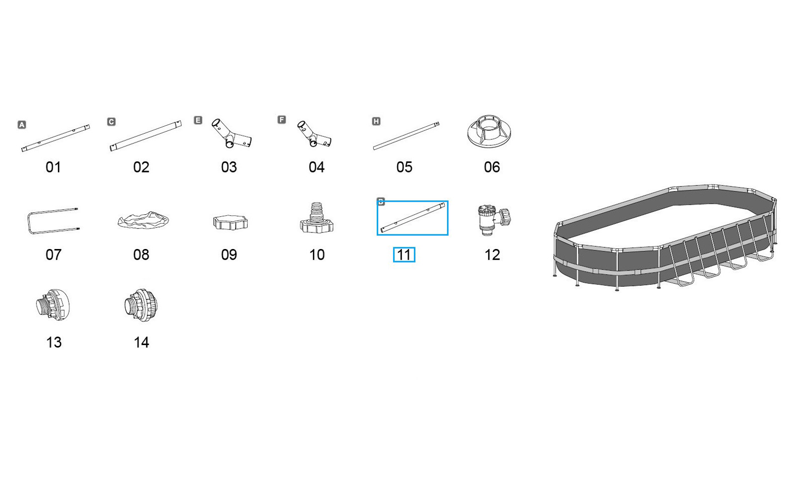 Bestway® Ersatzteil Horizontale Stange B (grau) für Power Steel™ Pools 732 x 366 x 122 cm, oval