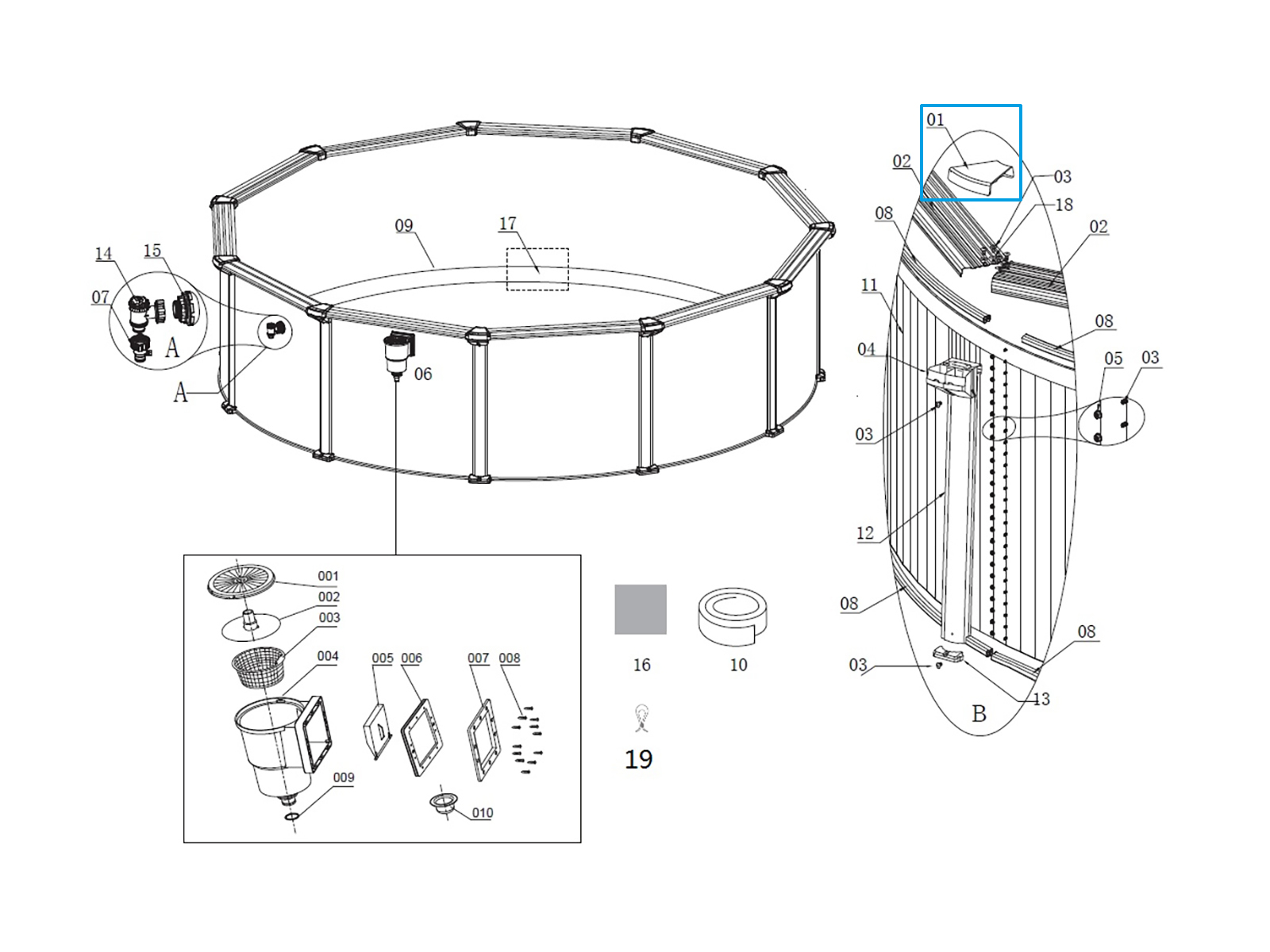 Bestway® Ersatzteil Oberer Verbindungsschutz (braun) für Hydrium™ Stahlwandpools (ab 2023)