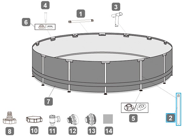 Bestway® Ersatzteil Vertikales Poolbein (grau) für ausgewählte Power Steel™ Pools, rund