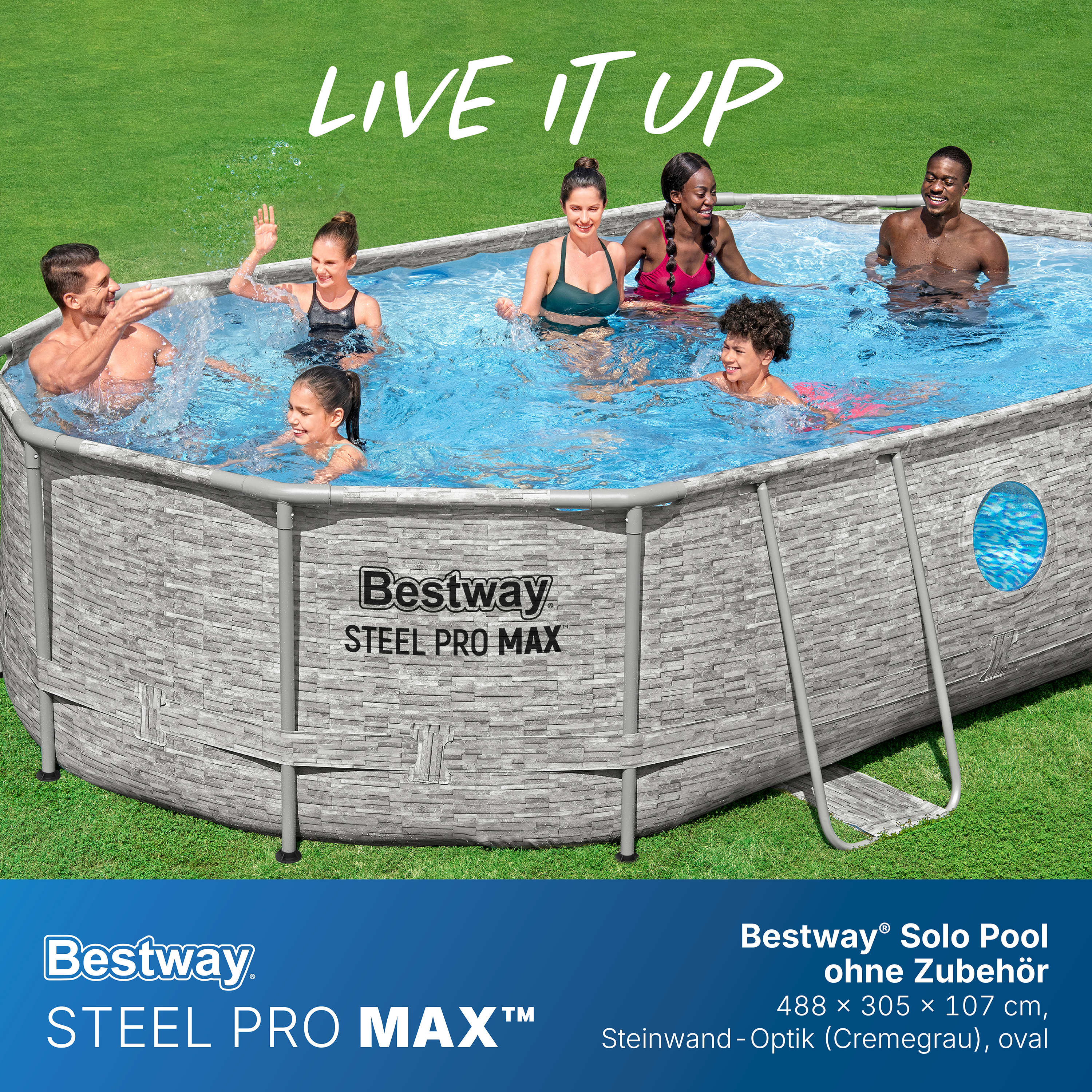 Steel Pro MAX™ Splashview™ Solo Pool ohne Zubehör 488 x 305 x 107 cm , Steinwand-Optik (Cremegrau), oval